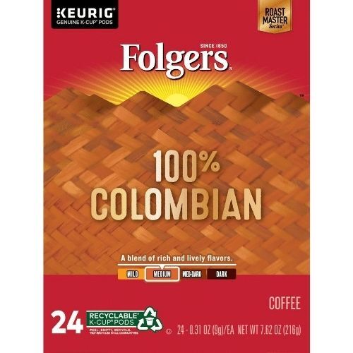 Folgers® 100% Colombian coffee is a distinctively rich and full-bodied taste of authentic Colombian beans that will help you enjoy every morning. The best part of wakin’ up is now the convenience in your cup! With Folgers K-Cup® pods, there’s no measuring and no filter. Just place your K-Cup pod in your Keurig® brewer, and in less than a minute, you can enjoy one perfectly brewed cup of Folgers Coffee.