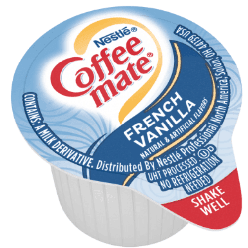 Coffeemate Original (180 ct), Coffeemate French Vanilla (180 ct), Coffeemate Hazelnut (180 ct), Coffeemate Snickers (50 ct), Cafe Mocha (50)